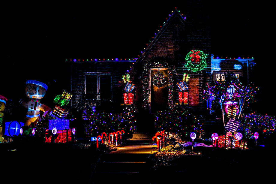 For nearly a decade, this home has gone all out with more than 40,000 lights stretching across the yard, walls, and towering front-yard displays. The massive tree, nativity scene, and themed sections make it a fun stop for families who love holiday lights with personality. It’s a long-running community favorite that always pulls a crowd.