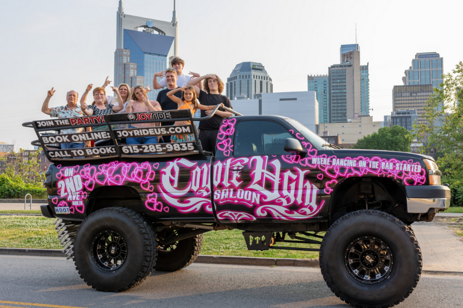 - Joyride Nashville – More than just your average party buses, Joyride offers everything from golf cart tours and monster trucks to bike, and tractor rides—making it easy to explore the city in your own style!